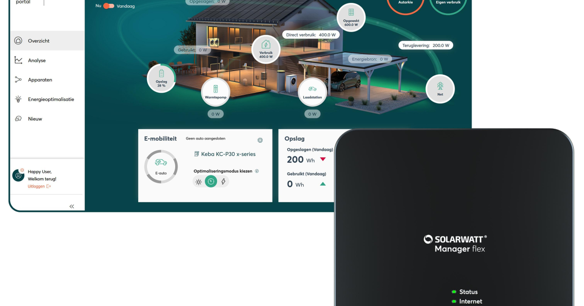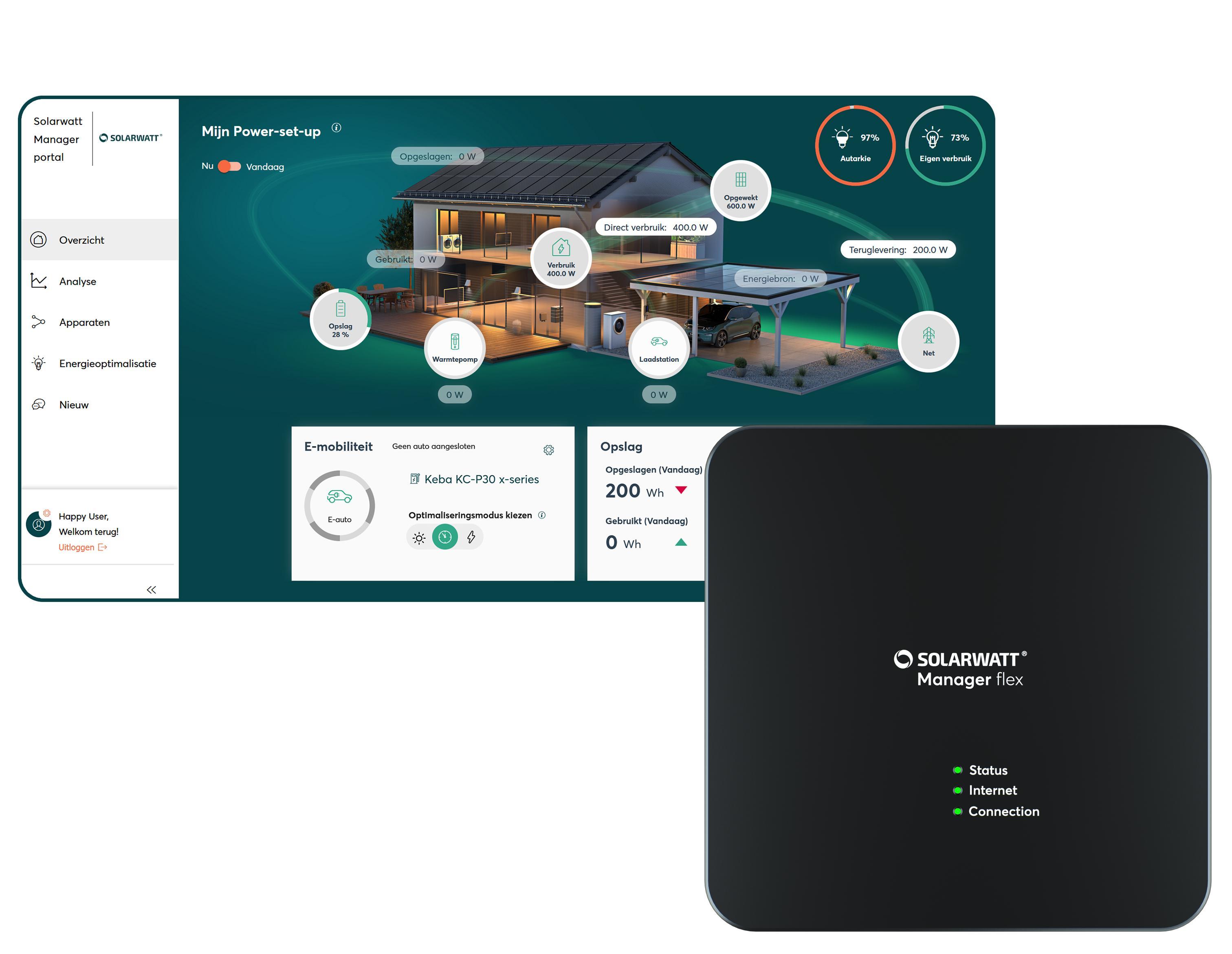 De Manager verhoogt het eigenverbruik van zelf opgewekte zonne-energie en geeft gebruikers volledige controle over hoe en wanneer energie wordt gebruikt, opgeslagen of verbruikt.